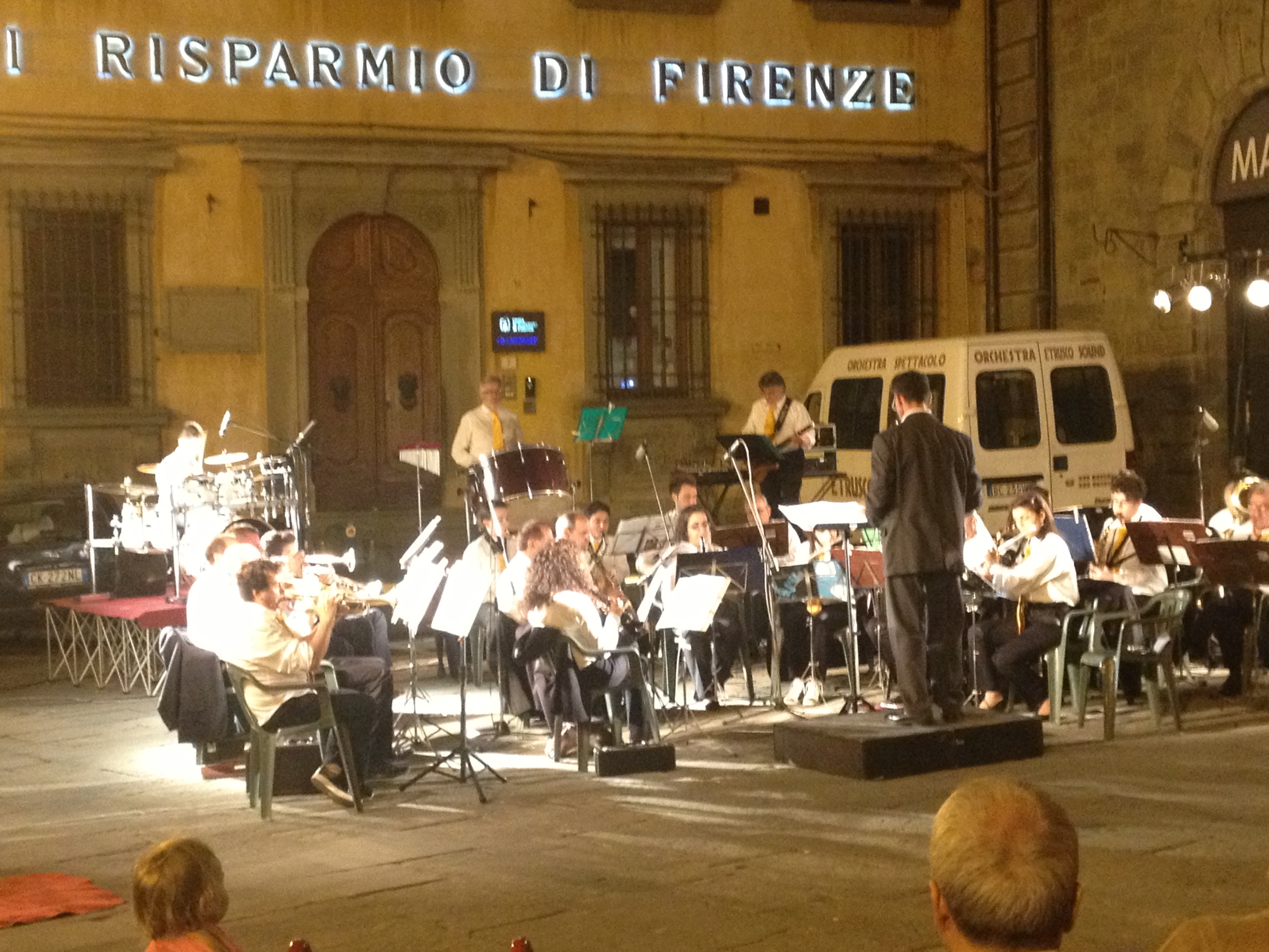 A few days earlier, while we traveling in Tuscany, we came upon a jazz orchestra band performing in the beautiful hilltop town of Cortona. We also came upon a mob of college students from Athens, Georgia, who filled the streets and bars.
