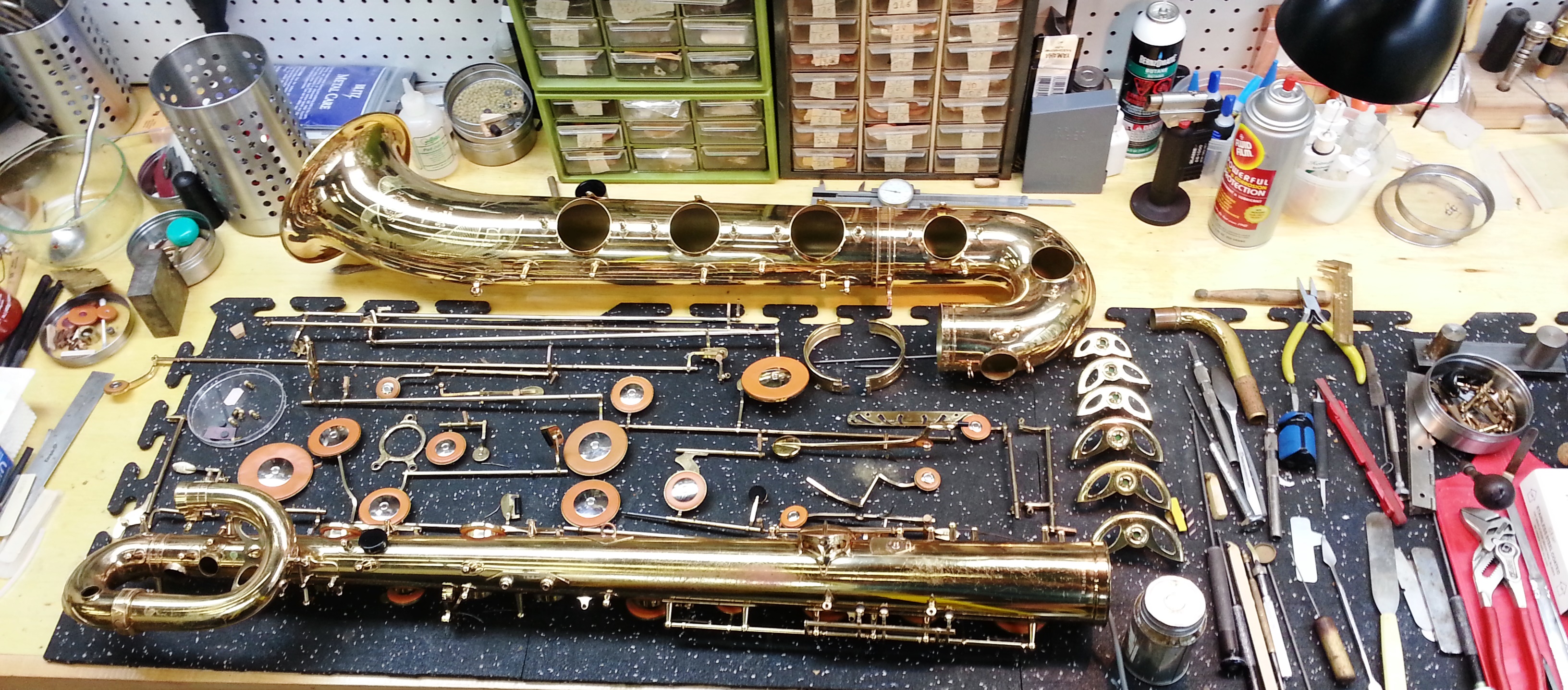 The second one was a Selmer Super Action 80 Series II Baritone Sax. It had a severe bend in the body and needed a total work-over. It’s always great to work on quality instruments that are being played by professionals who appreciate the outcome.