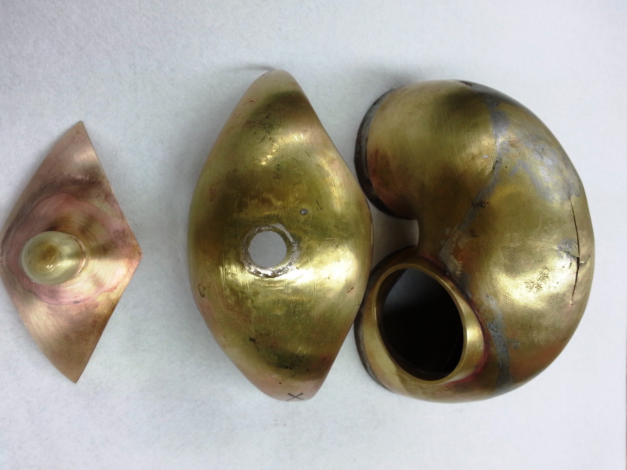 After removing the keys and the bow guard, I realized I had to disassemble the instrument. This gave me access to both sides of the bow. Because of the age of the metal, I had to be careful not to crack the brass while removing the dent.