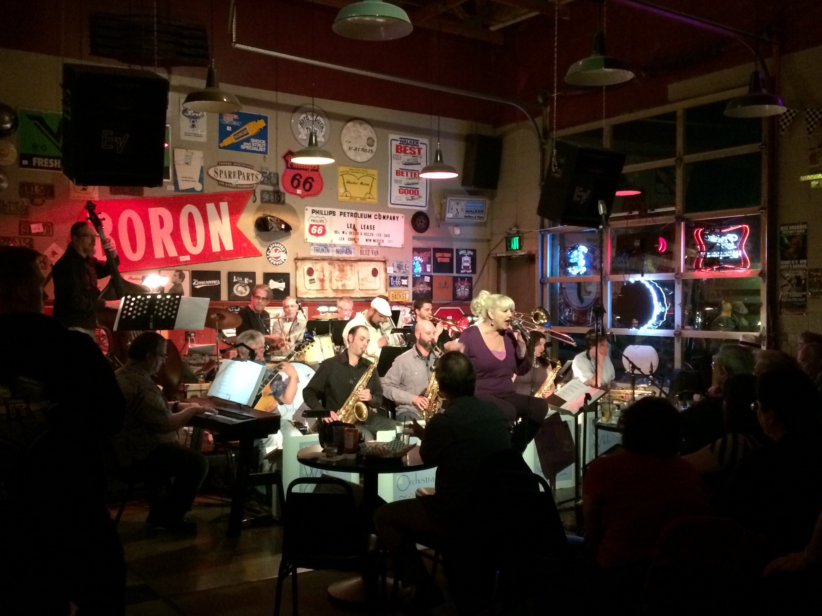 Besides visiting with family, and a trip to Wally’s Music, one of the most fun things we did was to return to Duff’s Garage to hear one of my old bands, the Lilly Wilde Orchestra. It was great to see my friends on the stage and in the garage. Maybe I’ll play next time….