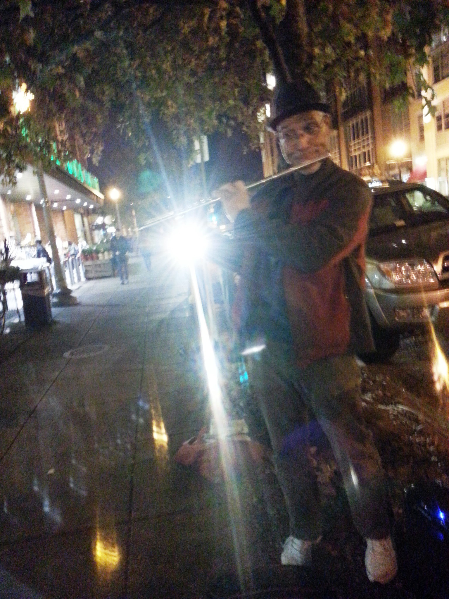 As I was coming out with my six-pack, I heard this awesome alto sax/flute player belting out a jazzy standard. I listened for a while, waited for a break, and then approached him check out his story. Turns out, he had a gig in Baltimore with Gladys Knight and the Pips, and was picking up some extra cash while entertaining the glitterati on P Street.
