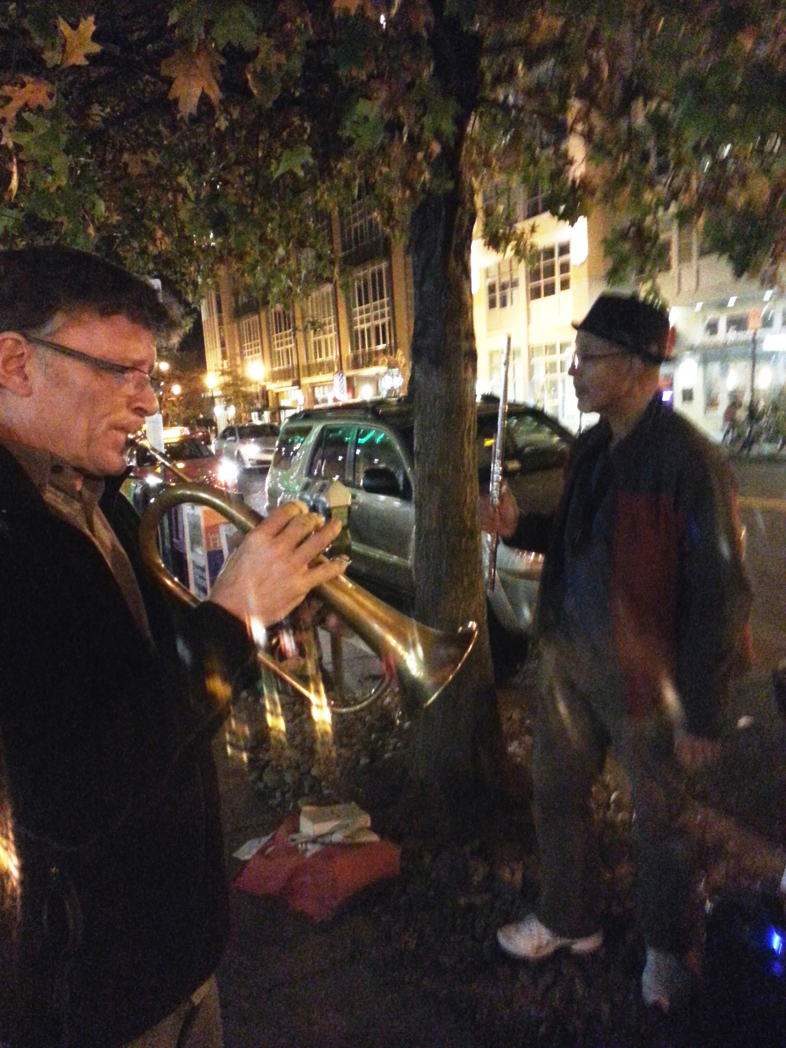 Seriously, I was just popping over to pick up some bottled soda water – about the only thing at Whole Foods you can get for a bargain – and to my own surprise, ended up playing my flugelhorn on the street!