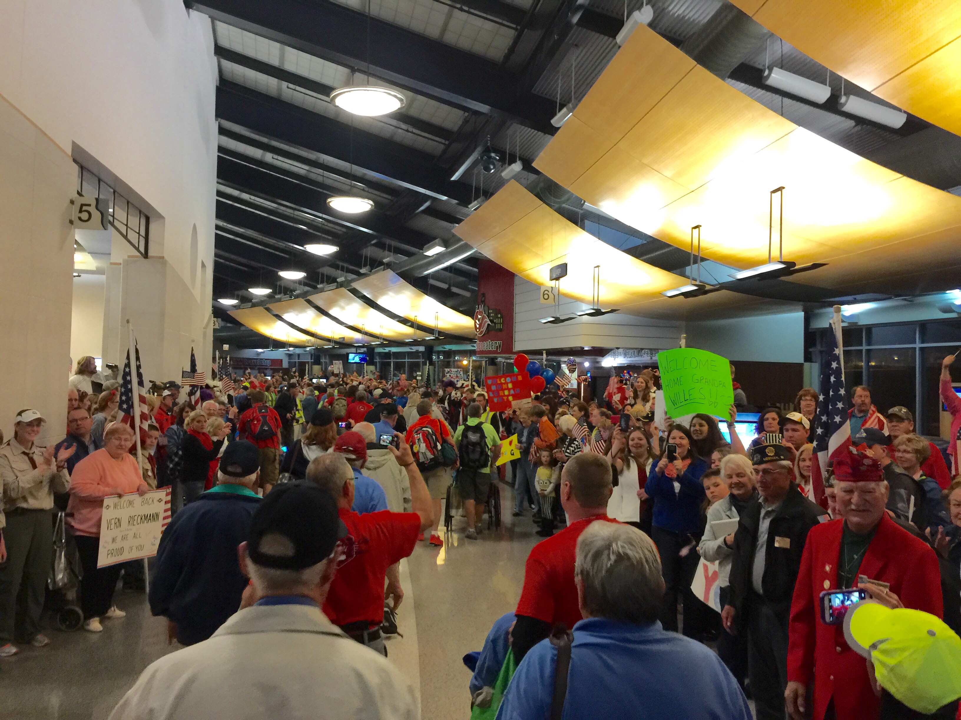 On the way home they had a mail call. Friends and family had sent letters and cards in advance which were handed out on the plane to remind them how much these letters meant to them while at war. Upon their arrival, they were met with a crowd of cheering fans. It all seems fitting on this Memorial Day weekend. I am grateful for his safe return.