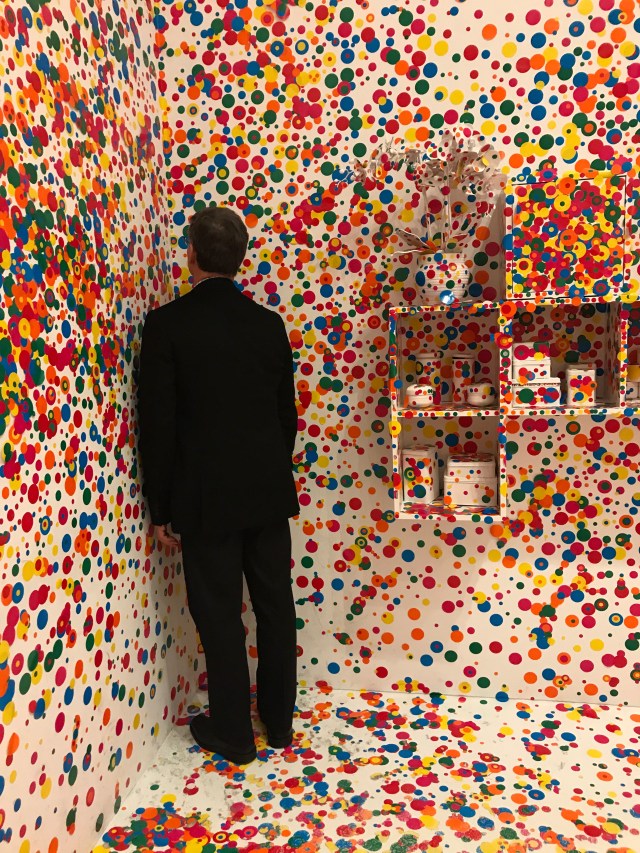 TIME OUT! The last piece in the show is the Obliteration Room. Attendants hand out sheets of colored dots that you can place anywhere in the room. After thousands of people have passed through this space, the explosion of dots is in no need of mirrors to multiply!
